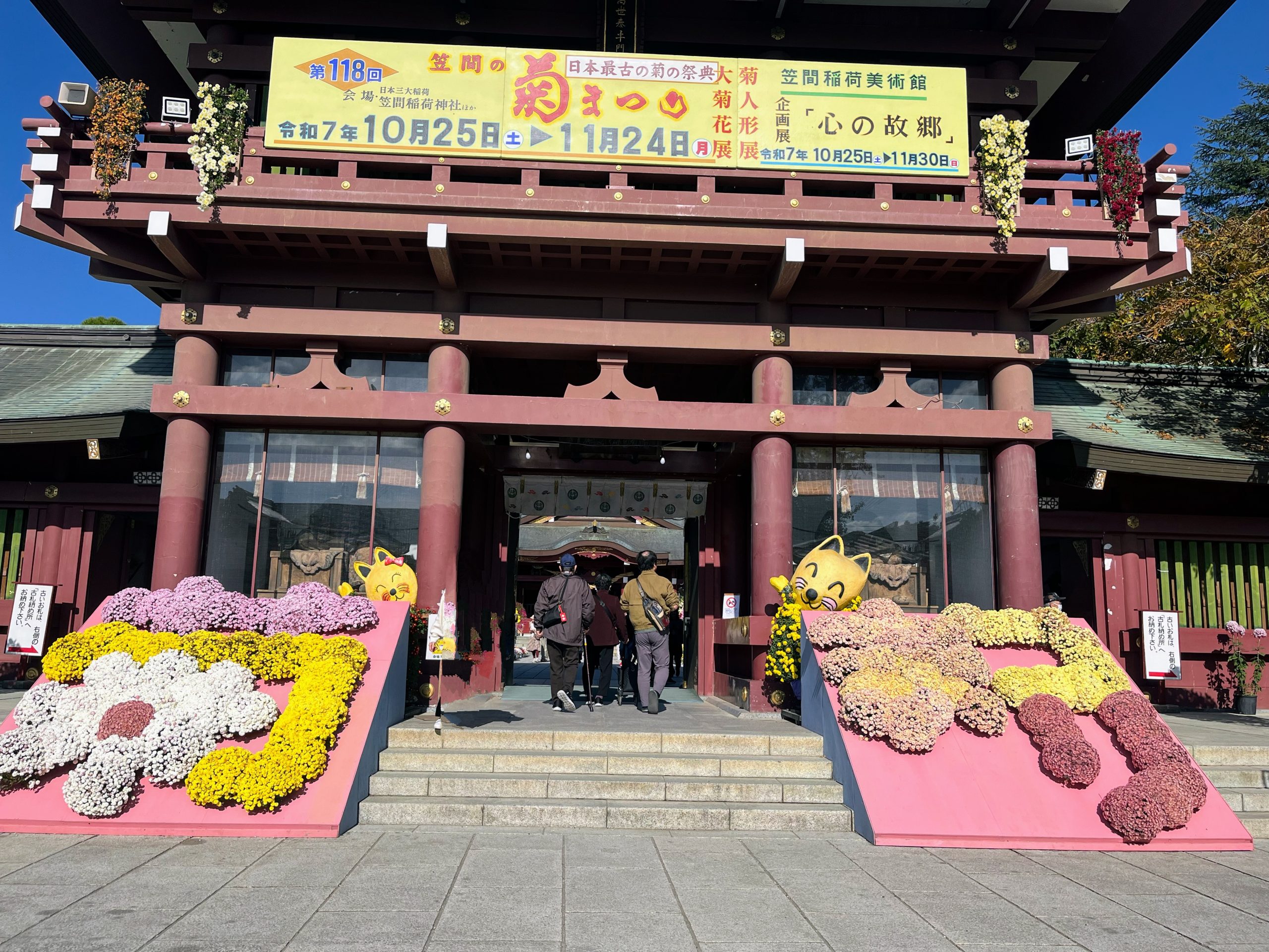 笠間稲荷神社の境内には丹精込めて育てられた菊がたくさん展示してあり、仕立ての見事な菊や菊人形など見応えありました。